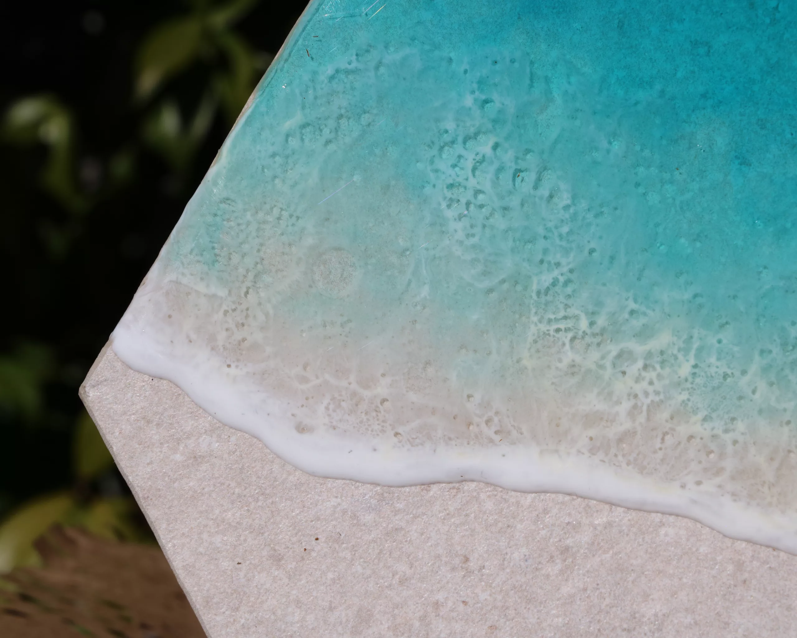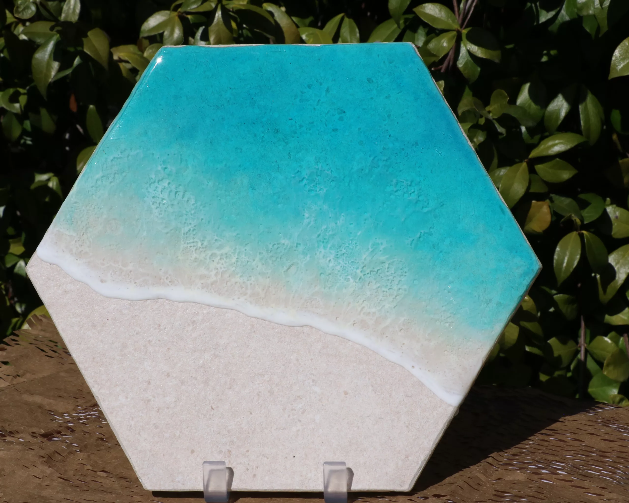 Obra original en base porcelánica color arena. Elaborada con resina epoxi laminada.