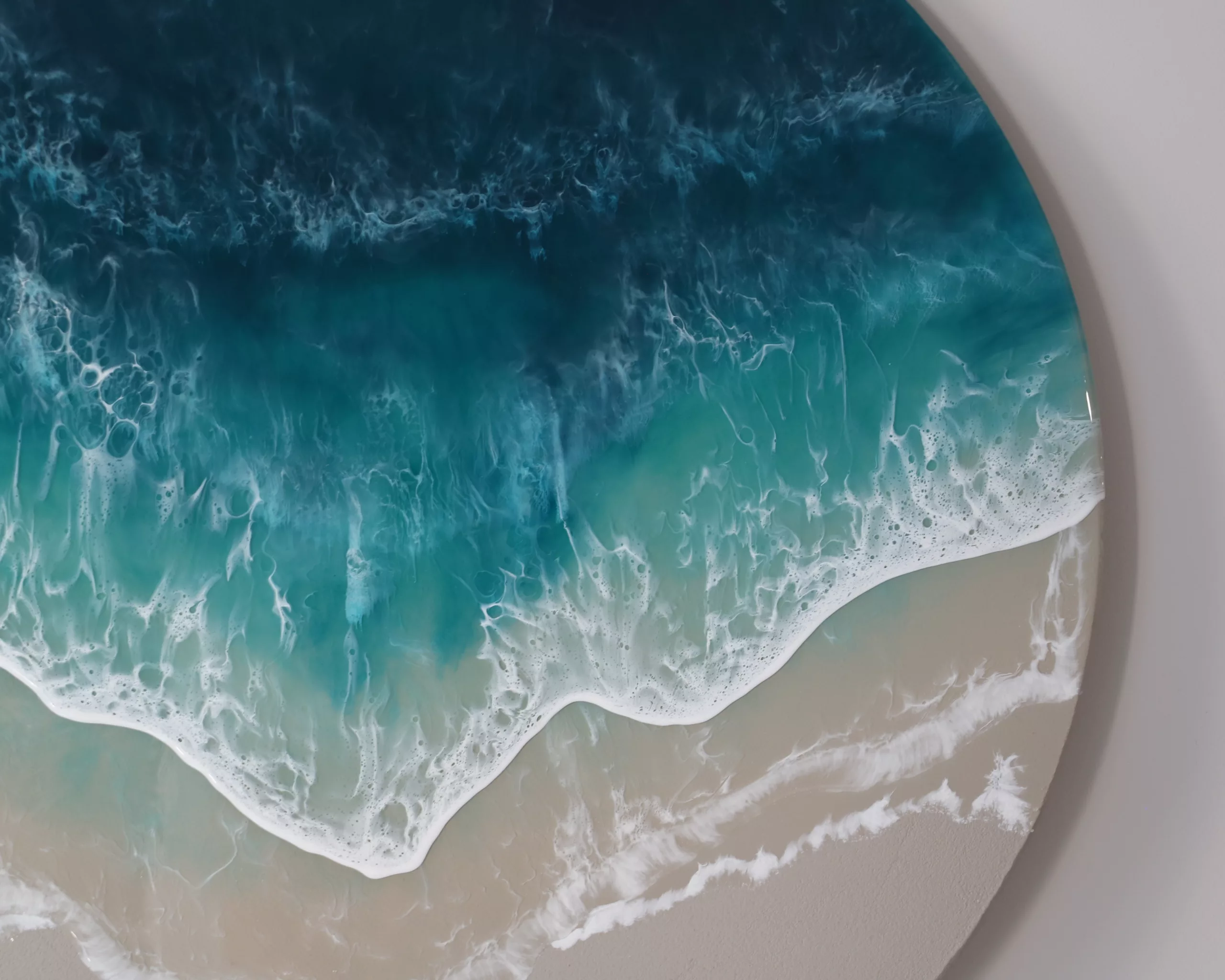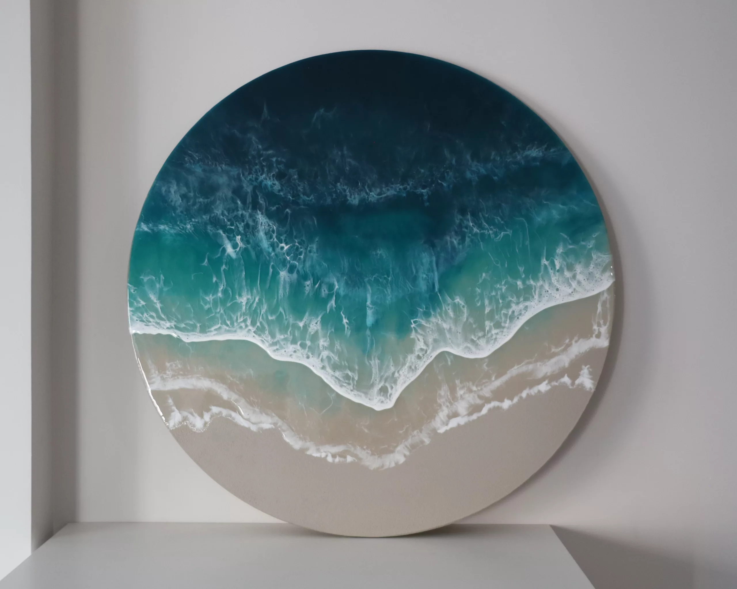Obra original en base de DM pintado. Elaborada con resina epoxi laminada en varias capas.