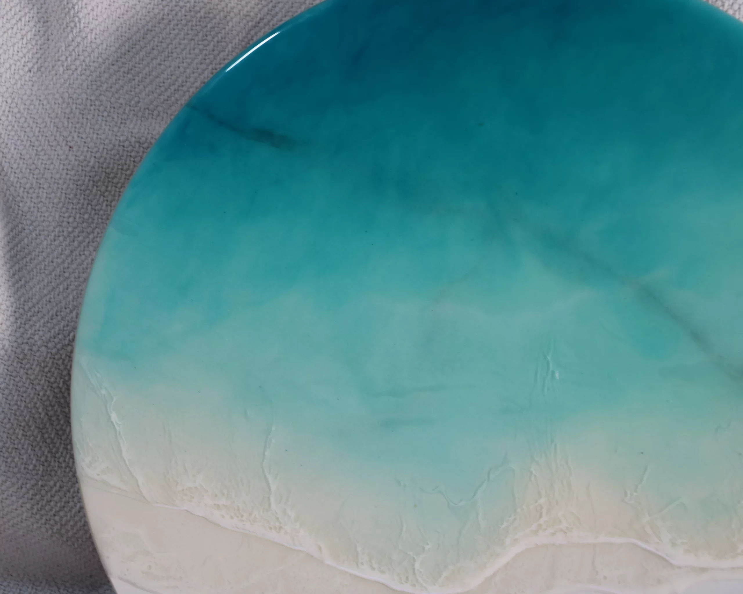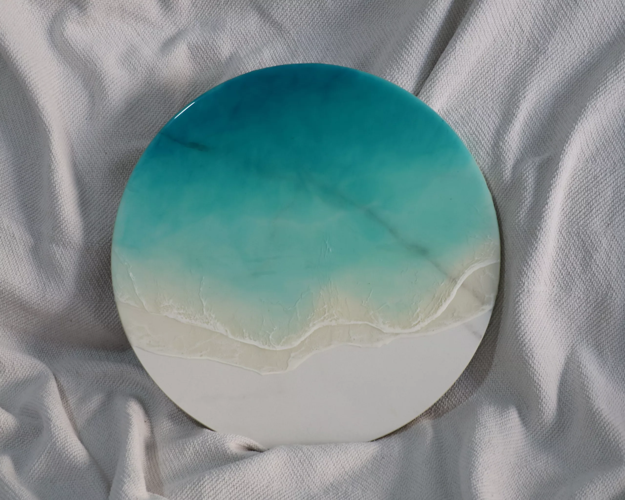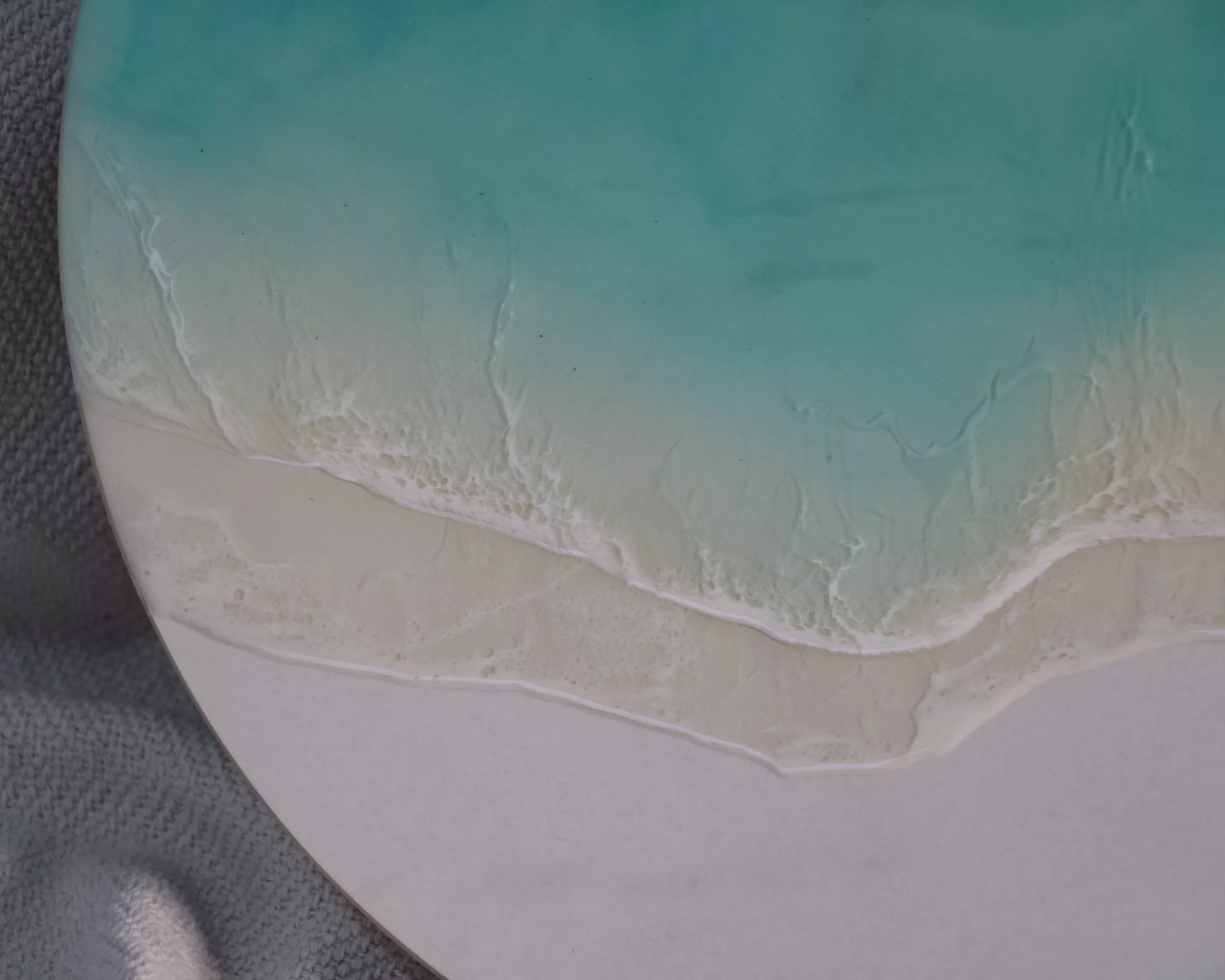 Obra original en base porcelánica de color blanco. Elaborada con resina epoxi laminada en varias capas.