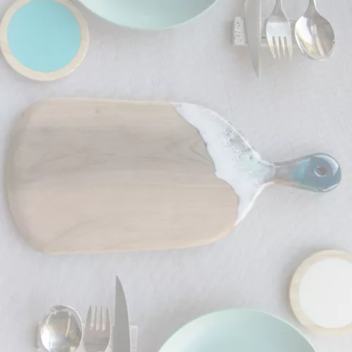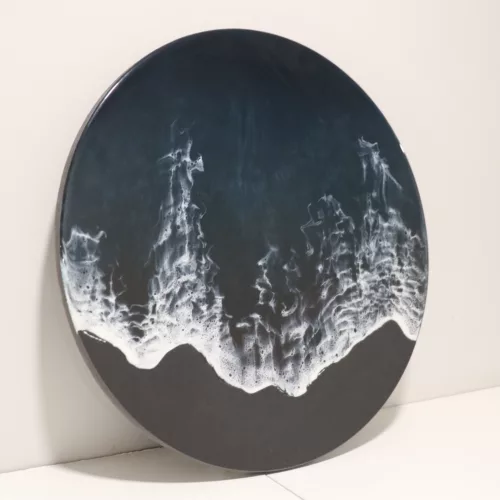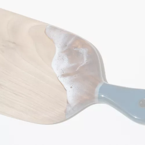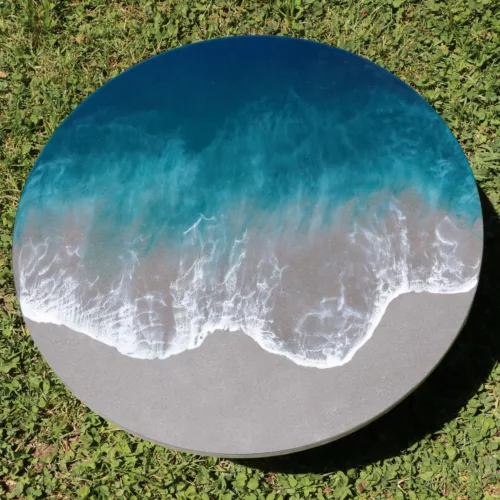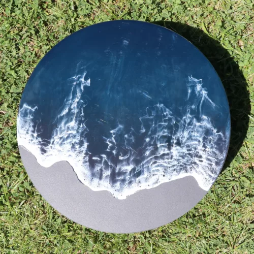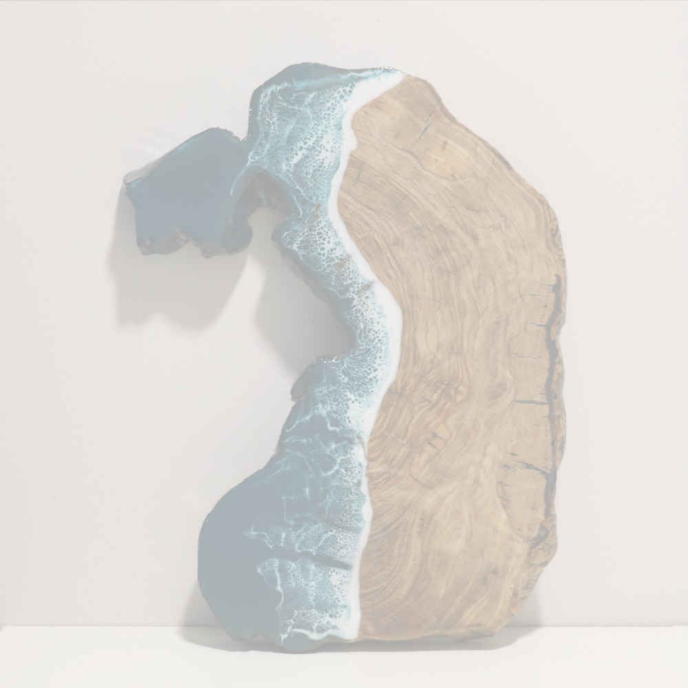 Obra original en base de madera de olivo pulida y tratada con aceite mineral. Elaborada con resina epoxi laminada en varias capas.