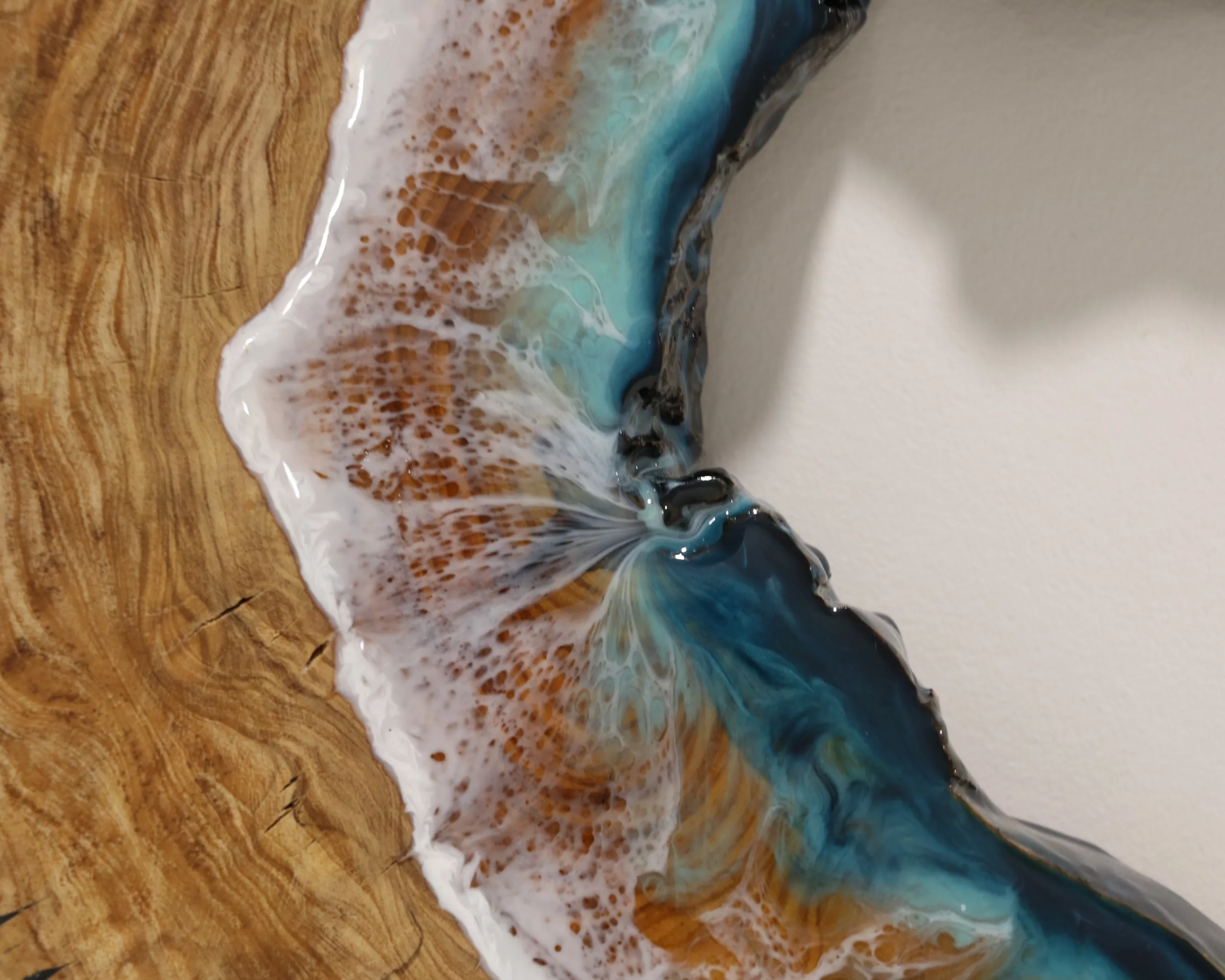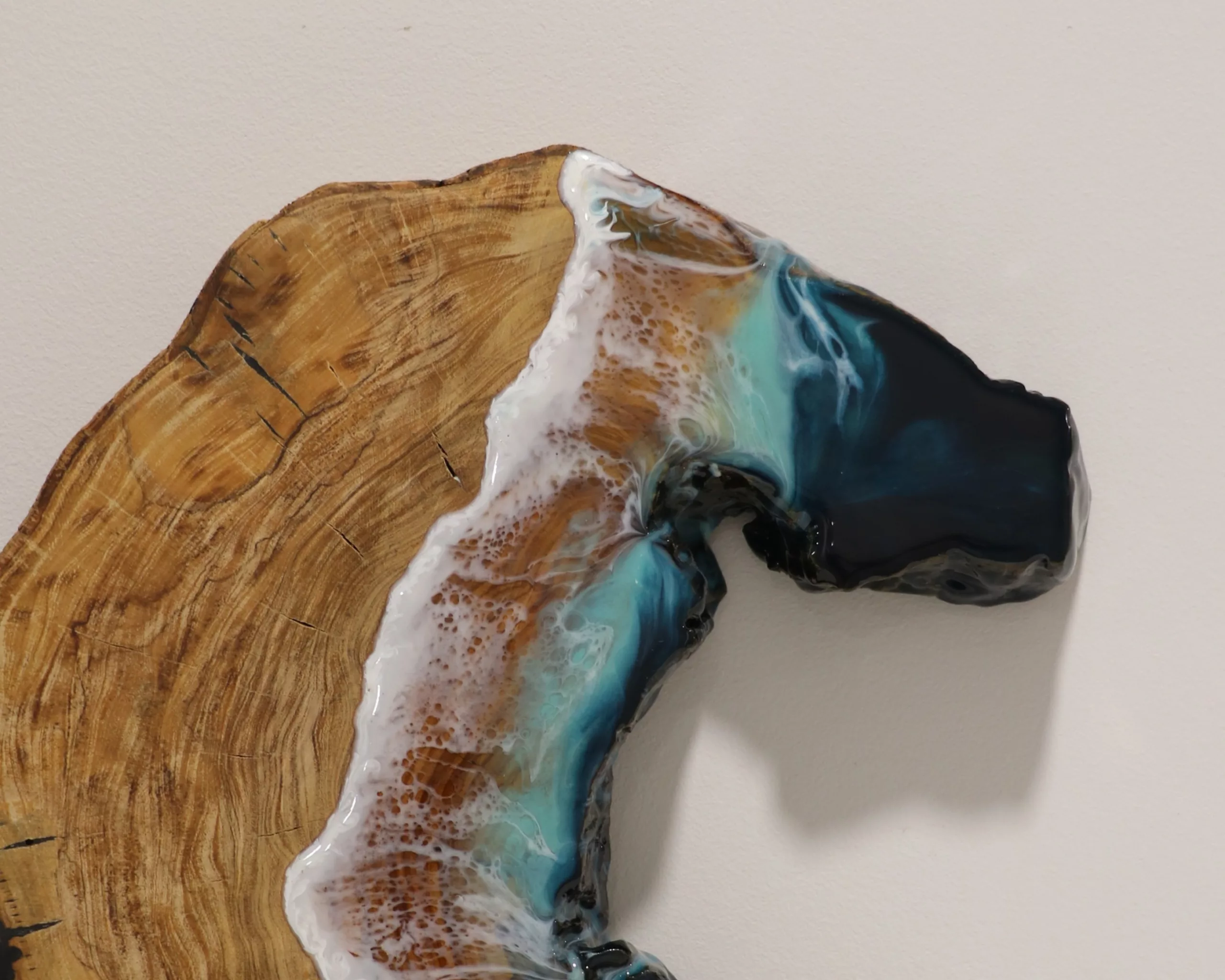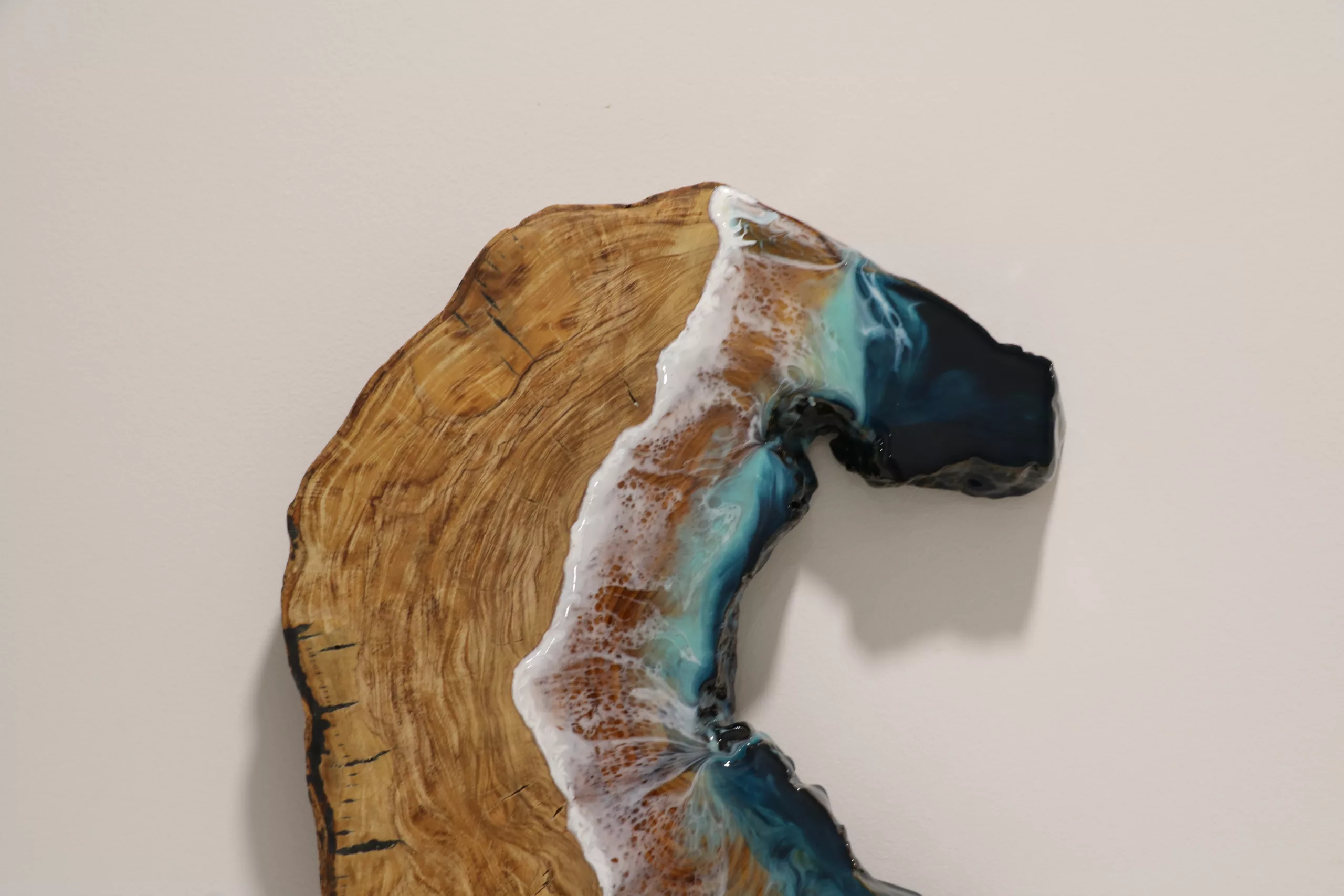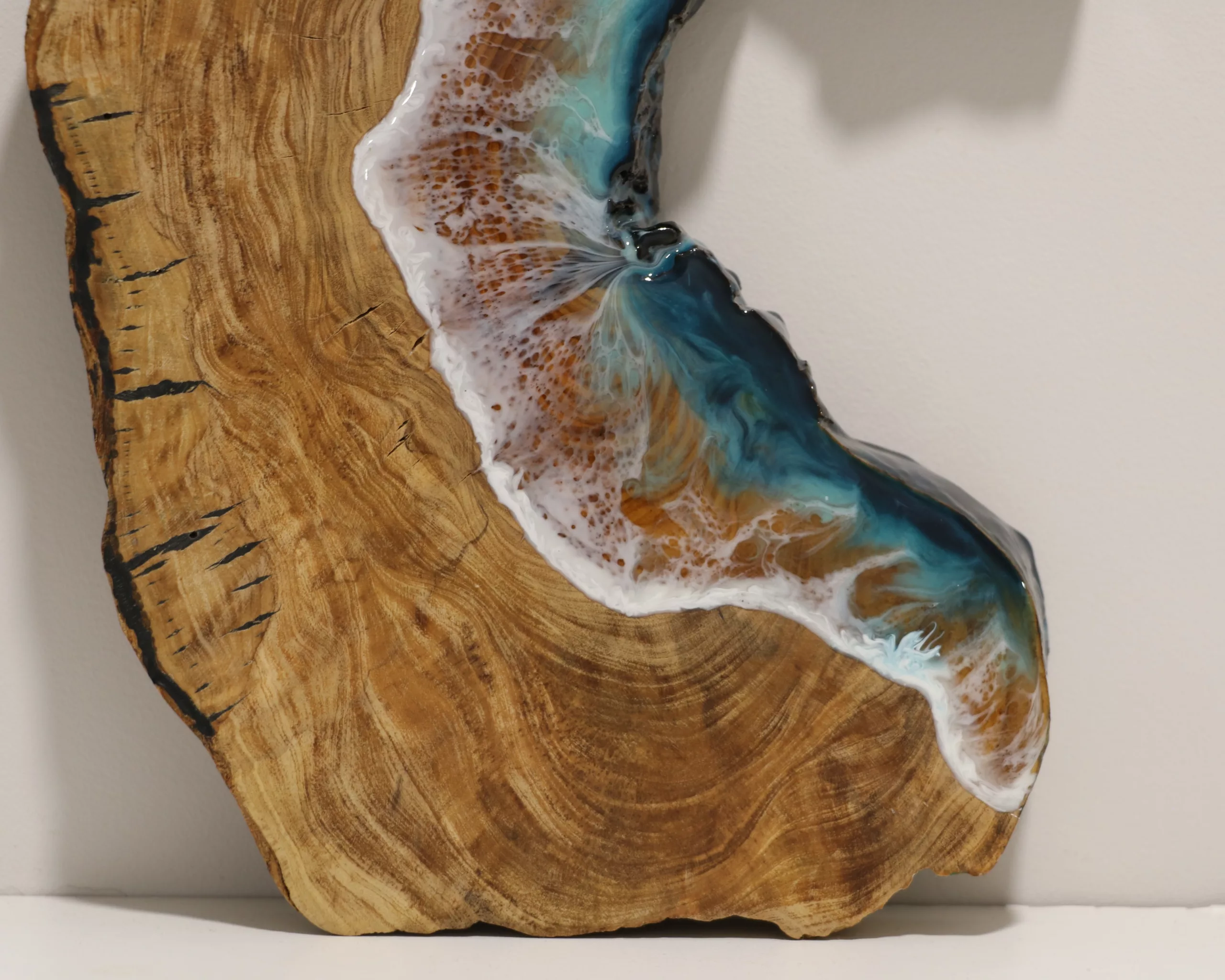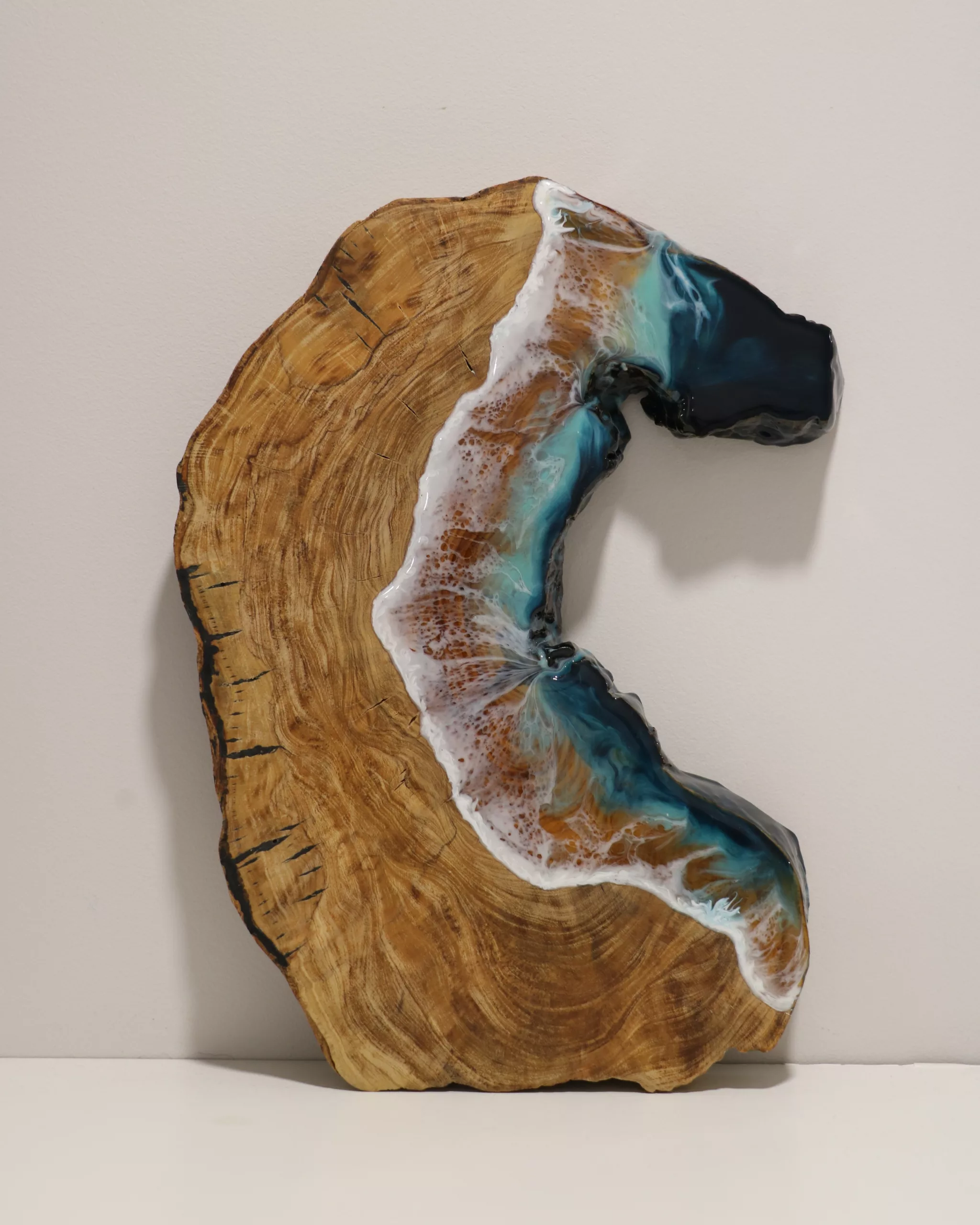 Obra original en base de madera de olivo pulida y tratada con aceite mineral. Elaborada con resina epoxi laminada.