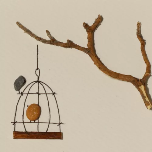 Ilustración siguiendo la técnica del arte lineal, acompañada de elementos naturales.