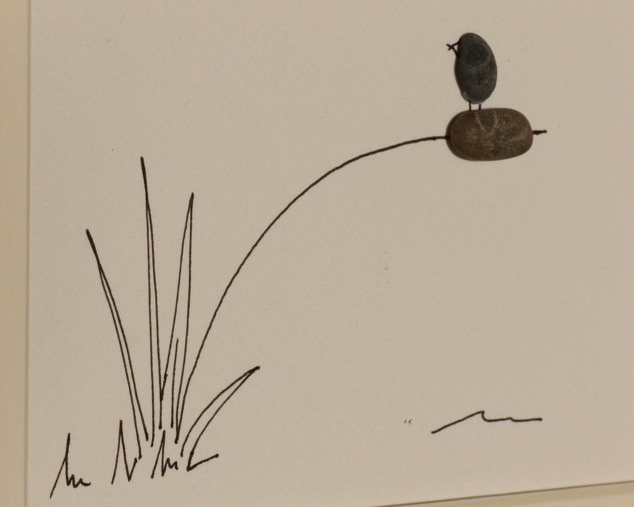 Obra original. Ilustración siguiendo la técnica del arte lineal, acompañada de elementos naturales.