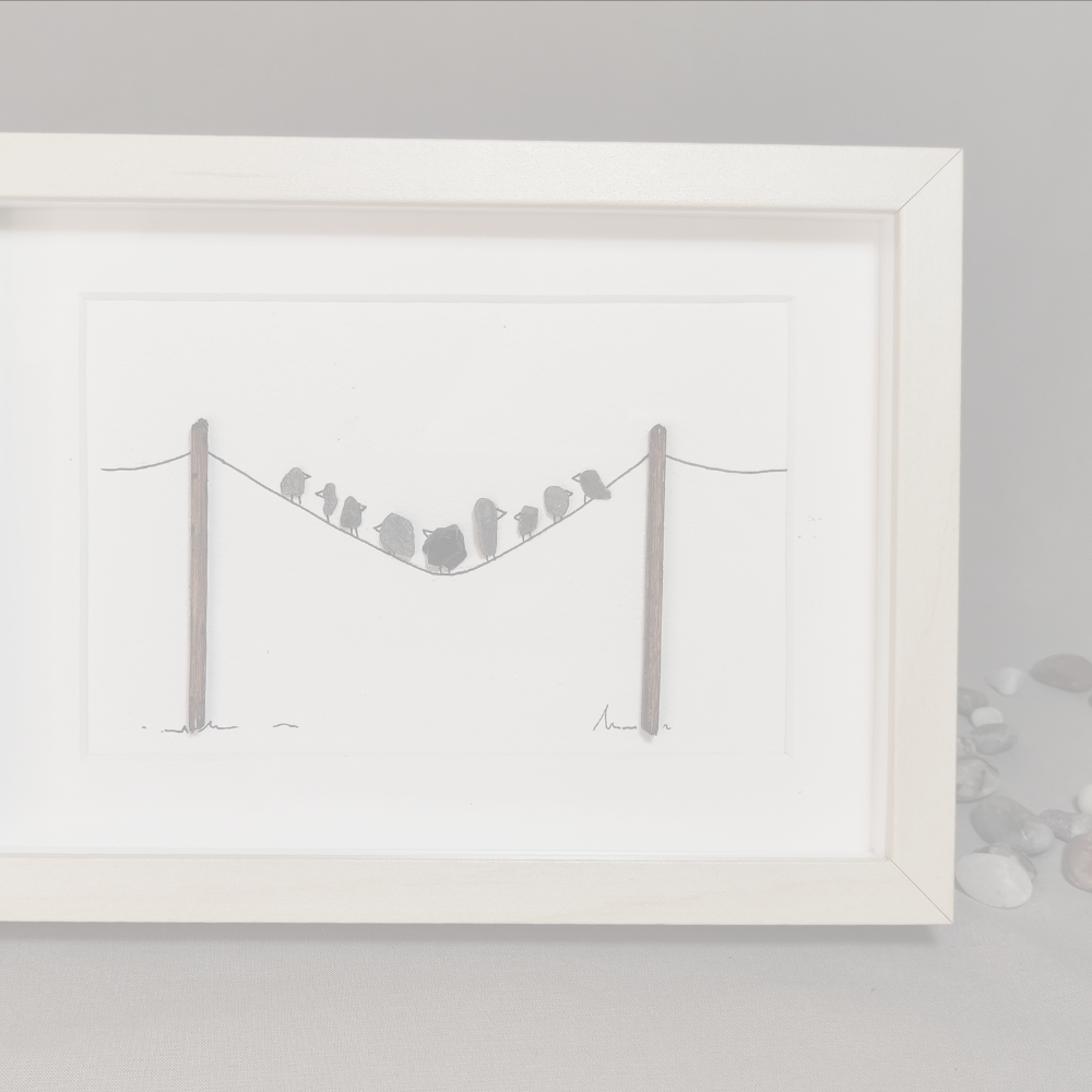 Obra original. Ilustración siguiendo la técnica del arte lineal, acompañada de elementos naturales.