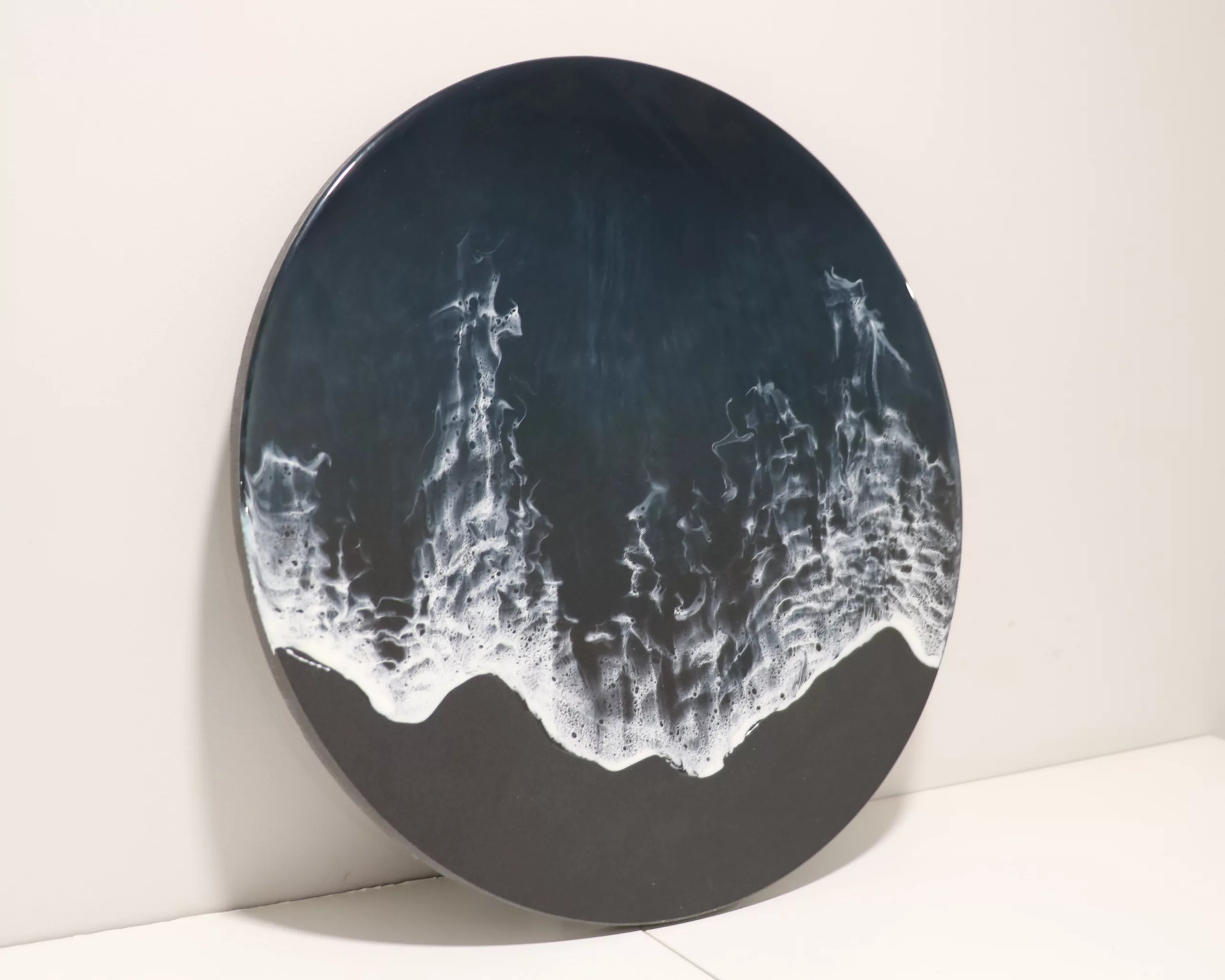 Obra original en base porcelánica de color negro. Elaborada con resina epoxi laminada en varias capas.